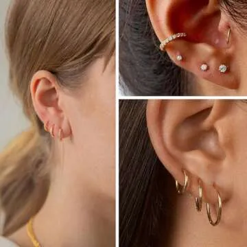 14K Gold Earrings Sets for Multiple Piercing Small Huggie Hoop and CZ Ball Stud Earrings Set for Women Trendy Hypoallergenic Cartilage Earing Hoops and Studs
