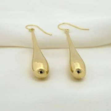 Show moreIntroducing our exquisite 14k Yellow Gold 2 Inches Large Polished Teardrop Dangle Earrings, a stunning accessory that effortlessly combines elegance and charm. Crafted with solid 14k gold, these earrings are not just plated or filled, guaranteeing durability and a high-quality finish that will stand the test of time. Each pair is meticulously polished to a radiant shine, allowing the teardrop design to catch the light and dazzle from every angle. With a weight of 3.0g and dimensions of 9mm in width and 50mm in total length, including a 40mm dangling portion, these earrings are designed to make a statement while remaining comfortable for all-day wear.