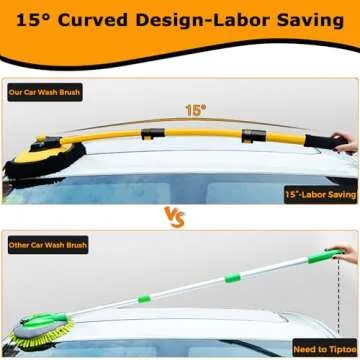 15° Curved Car Wash Brush with Long Handle - Perfect for All Vehicles