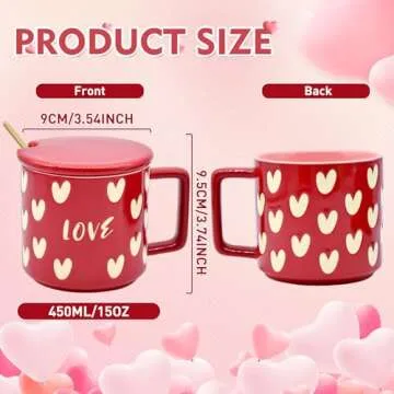 15 oz Valentine's Day Love Heart Mug with Lid and Spoon - Romantic Ceramic Coffee Cup