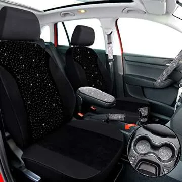 Show more Transform your driving experience into a glamorous escape with the 15 Pieces Bling Velvet Fabric Car Seat Covers Full Set. Designed specifically for women who appreciate elegance and style, this full set boasts a unique combination of luxurious velvet fabric and dazzling rhinestone embellishments. Each piece has been thoughtfully crafted to not only offer protection for your car seats but also to elevate your vehicle's interior with a touch of bling that catches every eye.