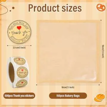 150 Pack Bakery Bags with Window, 7.5 x 7.1 Inches, Sublaga Paper Sandwich Bags, Donut Bags To Go, Bakery Paper Bags for Treat, Snack, Cookie Waffle Cake Packaging