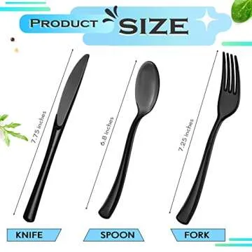 150 Pieces Disposable Cutlery Set Plastic Silverware Heavy Duty Utensil Sets 50 Forks 50 Knives 50 Spoons for Home Office School Party Picnics Restaurant Outdoor Events or Every Day Use (Black)
