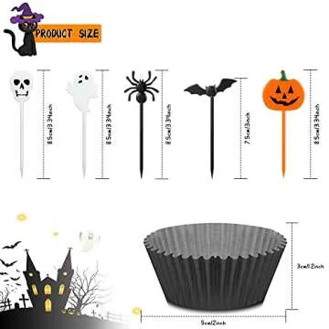 150 Pieces Halloween Picks Set 50 Plastic Halloween Cupcake Topper Pumpkin Ghost Cupcake Toothpicks with 100 Paper Cupcake Liners Muffin Wrappers Baking Cups for Kids Birthday Halloween Party Supplies