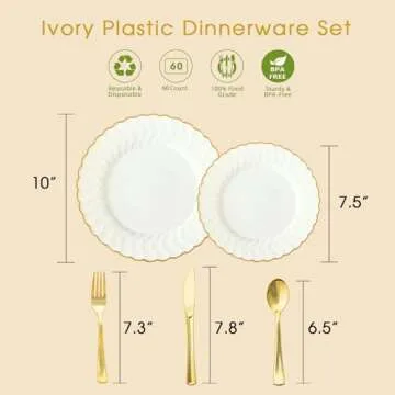 Perfect for a wide range of events, this dinnerware set makes party prep and cleanup a breeze. It's ideal for gatherings such as birthday celebrations, Mother’s Day brunches, Thanksgiving dinners, Christmas parties, baby showers, engagement parties, weddings, and more! With a value pack that caters to 30 guests, you will have everything you need to create a spectacular table setting.