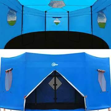 Unlike other trampoline tent options, our 15FT Trampoline Tent provides an unparalleled combination of ample airflow, sturdy design, and child-friendly features. Many competitors offer tents that sag or lack proper ventilation. Our tent guarantees a secure fit, minimizing sagging while maximizing fun, encouraging kids to explore and enjoy trampoline play all day, even in unfavorable weather conditions.