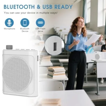 Show more Introducing the ultimate sound solution for teachers, presenters, and public speakers: the 15W Wireless Voice Amplifier. This versatile and powerful device is engineered to effortlessly project your voice across a crowd of up to 100 people, delivering crystal-clear audio without any distortion. With its innovative design featuring a premium 76mm large-sized horn and built-in DSP intelligent noise-reduction chip, you’ll experience only the purest sound quality. Its dual magnetic wireless lavalier microphones offer convenience like never before—clip them onto your collar for seamless usage, whether you’re teaching a class, guiding a tour, or leading a yoga session.