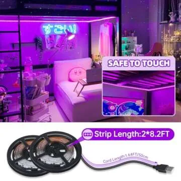 Show more Illuminate your space like never before with the 16.4FT Black Light Strip, designed specifically for creating vibrant and stunning atmospheres at any event. This remarkable light strip features 300 high-quality LEDs that emit a bright and beautiful glow in the dark, perfect for enhancing your parties, art displays, and unique decorative setups. With both USB and battery-powered options, this versatile strip gives you the freedom to set up your lighting exactly the way you want. Whether you're hosting a cosmic-themed birthday party, a Halloween haunt, or a dazzling rave, this black light strip will deliver an electrifying experience. Its flexibility and portability ensure that you can take the magic wherever you go!