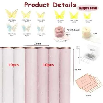 163 Pcs DIY Flower Bouquet Accessories Include 20 Sheets Waterproof Floral Wrapping Paper 2 Ribbons 36 3d Butterflies 10 Cards and 100 Bouquet Pin for Mother's Day Wedding Birthday Party Graduation