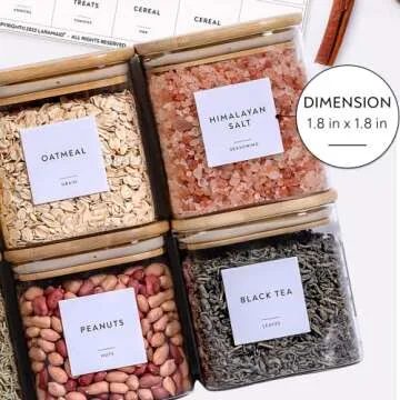 166 Minimalist Pantry Jar Label Set, Black Text on White Matte Vinyl Waterproof Label Sticker - Fits on Round, Square and Rectangle Glass Jars