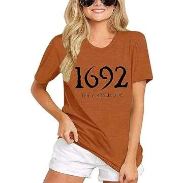1692 They Missed One Shirt Women Halloween Salem Witch Tshirt Funny Letter Print Tees Casual Short Sleeve Tops (S, Orange)