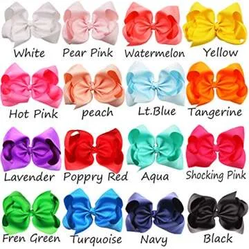 16Pcs 8 Inch Large Grosgrain Hair Bows with Clips for Girls