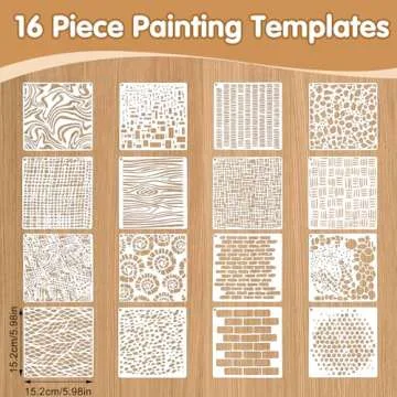 Show more Unleash your creativity with the **16Pcs Stencils for Painting**! Perfectly designed for artists and DIY enthusiasts alike, these high-quality, reusable templates come in an array of captivating patterns and measurements of **6 x 6 inches**, making them ideal for crafting art on any surface – from wood walls to canvases, furniture, and even fabrics. Each set includes **16 unique stencils**, featuring styles such as cell theory, cubism, burlap, bubbles, bricks, marble, tie-dye, and wood art patterns, allowing you to create mesmerizing combinations that will breathe life into your projects. Whether you're into watercolor, oil, or acrylic painting, these stencils can help you achieve stunning effects that will undoubtedly capture everyone’s attention.