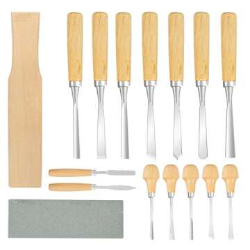 The ergonomic design of the handles significantly improves user comfort, enabling long hours of creative work without fatigue. Paired with a mallet, this set allows for precision and control that is essential for detailed carving projects. With a total of 14 versatile tools included, featuring 5 short palm wood knives, 7 long shaft carving tools, and an essential set of files, you're equipped for any carving endeavor.