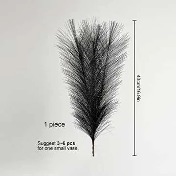 Show moreIntroducing our stunning 17” Artificial Pampas Grass Decor, expertly crafted to bring a touch of elegance to your space. This exquisite arrangement comprises 3 pieces of fluffy faux pampas grass, designed with meticulous attention to detail to mirror the allure of natural dried flowers. The sleek black color adds a modern twist, making it versatile for various decor themes, from bohemian to contemporary. Perfect for brightening up your home or adding style to your wedding decor, this artificial arrangement requires no maintenance, ensuring that its beauty lasts all year round.