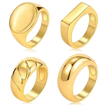 Show moreIntroducing the stunning 17 MILE 4 PCS Gold Chunky Dome Rings Set, a perfect blend of elegance and modern design that every jewelry lover should add to their collection. Crafted with care and precision, these rings are made from high-quality brass, adorned with authentic 18K real gold plating that glistens beautifully without tarnishing. Each chunky ring showcases a unique style—from blank signet shapes to twisted and domed designs—allowing you to express your individuality effortlessly. Whether worn alone for a statement-making look or stacked together for a trendy layered effect, these rings are sure to become your go-to accessories, suitable for any occasion.