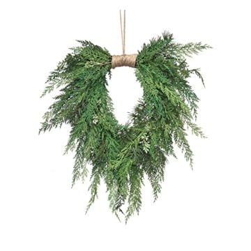 Show moreEnhance your seasonal decor this year with our stunning faux cedar wreath, designed to bring a touch of nature into your home. With a combination of gorgeous, natural-looking faux cedar berries and mixed pine boughs, this wreath is not just a decoration; it's a statement piece. Measuring a generous 18 inches high and featuring a 5-inch jute hanging loop, it’s crafted to be the perfect accent for any window or door.