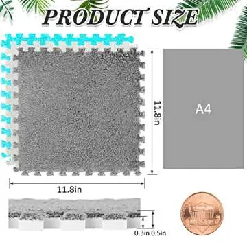 18 Pcs Plush Foam Floor Mat Square Interlocking Carpet Tiles with Border Fluffy Play Mat Floor Tiles Soft Climbing Area Rugs for Home Playroom Decor, 12 x 12 x 0.4 Inch (White, Light Gray, Royal Blue)