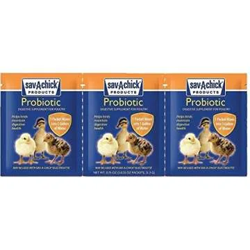 ... Show moreIntroducing the ultimate poultry wellness solution from Sav-A-Chick, designed to keep your feathered friends healthy and thriving. Our unique 18-piece bundle of supplements includes 9 packets each of essential electrolytes and probiotics, specifically formulated for chickens, ducks, turkeys, and other domestic poultry. Each packet, weighing 0.2 oz, mixes flawlessly with 1 gallon of water, providing an easy and reliable way to ensure your birds receive the nutrition they need.