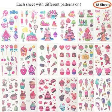 18 Sheets of Dessert Temporary Tattoos – Fun & Safe for Kids Parties!