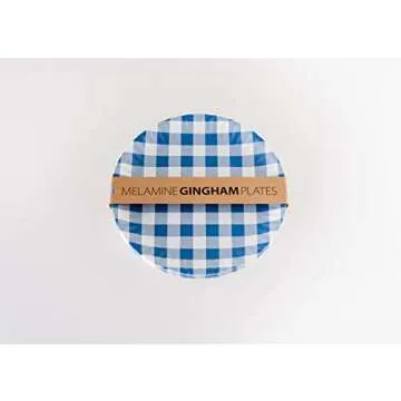 180D Reusable Blue & White Gingham Checkered Picnic/Dinner Plate, 9 Inch Melamine, Set of 5