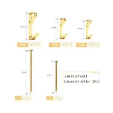 184 Pieces Picture Hanging Kit, 20lb, 30lb, and 50lb Picture Hangers, Metal Picture Hanging Hooks with Nails, on Drywall, Wooden Wall(Gold)