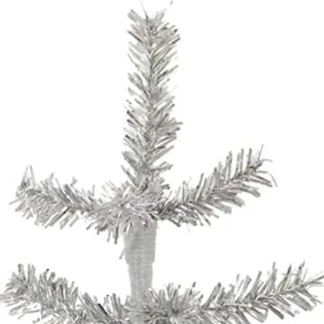 18in Silver Tinsel Christmas Tree Artificial Aluminum Thin Brush Branches Wood Base Stand Included