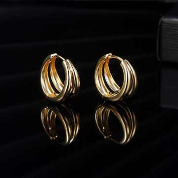 18K Gold Plated Hoop Earrings for Women Double Hoops Huggies Punk Earrings for Tenngirls