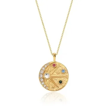 Elevate your jewelry collection with the stunning 18k Gold Plated Sun and Moon Coin Pendant Necklace by NUZON, an exquisite blend of elegance and celestial charm. This enchanting necklace features a beautifully designed sun and crescent moon pendant, intricately detailed with AAA+ Cubic Zirconia that captures light and sparkles with every movement. Crafted with high-quality materials, the 18k gold plated stainless steel ensures durability while remaining tarnish-resistant...