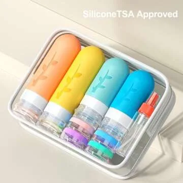 Show more Experience the ultimate in convenience with our 18-pack reusable travel bottles set, meticulously designed for jet-setters and adventure enthusiasts alike! This comprehensive set features 1 waterproof bag, 2 silicone bottles (3 oz/90 ml), 2 silicone bottles (2 oz/60 ml), 2 spray bottles (1.05 oz/30 ml), 4 cream jars (0.35 oz/10 ml), along with essentials such as funnels, labels, brushes, and spatulas. Whether you’re going on a weekend getaway or an extended adventure, these versatile containers cater to all your travel needs.