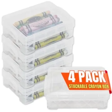1InTheOffice Stackable Plastic Crayon Box Set - 4 Pack for Easy Storage