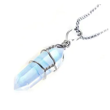 1pc Lab Created White Opal Gemstone Drop Pendant Necklace - Healing Reiki Chakras Energy Rock