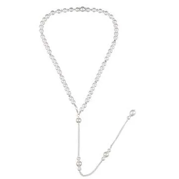 Show more Indulge in the mesmerizing charm of our exquisite Back Drop Necklace, a stunning piece designed to elevate any outfit with grace and elegance. Crafted from high-quality imitation pearls and a durable nickel-free alloy, this necklace is both stylish and safe for all wearers. With its elegant silver hue, this necklace glimmers beautifully, adding a captivating touch to your look. The adjustable length ranges from 51 to 80 cm (20 to 31 inches), making it a versatile accessory for various necklines.