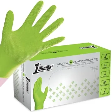 1st Choice 6 mil Mechanic Gloves, Nitrile Gloves Disposable Latex Free - Medium Box of 100 Green Nitrile Disposable Gloves