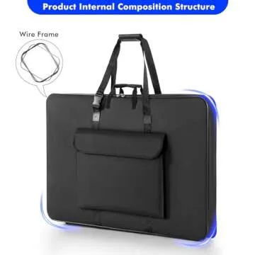 Show more Introducing the 1st Place Products Premium Art Portfolio Case—designed specifically for artists and professionals who require a reliable, stylish, and functional means to transport their valuable items. Measuring a generous 24" x 36" with an actual size of 25" x 37", this soft-sided portfolio boasts a sturdy stainless steel wire frame that surrounds the entire case, ensuring it maintains its form even during extensive travel. Crafted from premium water and tear-resistant nylon, this durable case not only offers long-lasting protection for your artwork, photography, sketches, flat screens, and even solar panels but also allows for easy organization and effortless carrying.