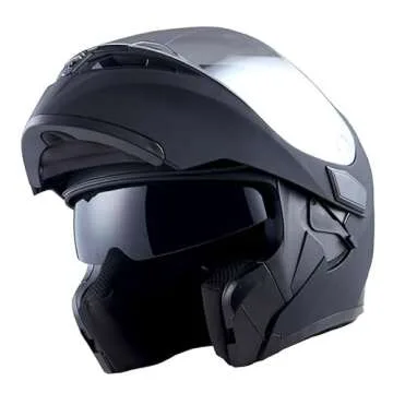 1Storm Motorcycle Modular Full Face Helmet Bike Flip up Dual Visor Sun Shield: HB89 Matt Black