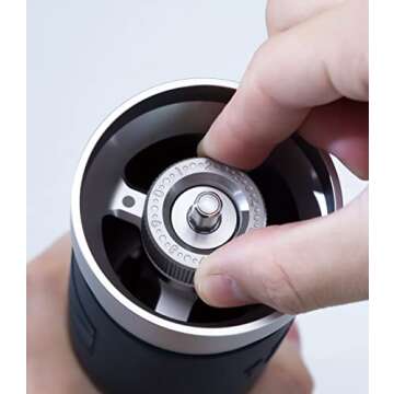 The **FINE ADJUSTMENT DIAL** is a game-changer, featuring **40 clicks** in a full rotation, allowing users to achieve precise shifts of **12.5 microns** for exact grind settings. With over **200 clicks**, this innovative design ensures 100% control over your grind size. Whether you're using an espresso machine or a pour-over method, dial in your perfect coffee with ease, finding the sweet spot that accentuates the flavors of your beans.