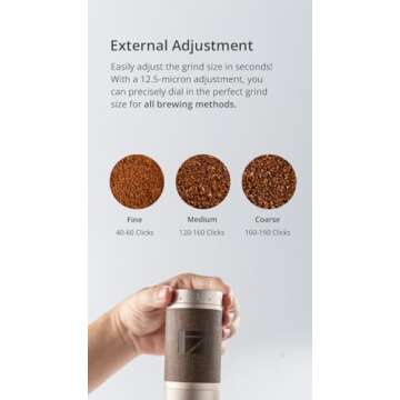 The X-Pro S boasts an innovative external adjustment design that offers 60 precise steps of adjustment per rotation, allowing for seamless calibration to achieve your desired grind size. The heptagonal burr grinder is engineered for optimal extraction, particularly suited for pour-over coffee, resulting in a light and sweet flavor profile that highlights the nuanced tastes of your beans. Your coffee experience will never feel the same again!