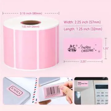 2.25 x 1.25 Inch Direct Thermal Label Roll 1000 Pink Sticker Labels for Barcode Label Work with Rollo Munbyn Phomemo Desktop Thermal Printer, 1 Roll