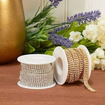 2.5 mm Gold Crystal Rhinestone Chain for Sewing and Crafts, 3 Rows (3 Yards)