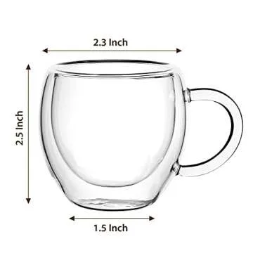Crafted from premium borosilicate glass, these double-walled espresso mugs provide superior thermal insulation, keeping your beverages at the ideal temperature while remaining comfortable to grip. The ingenious design ensures that even boiling liquids won't heat the outer layer, allowing you to drink with ease without the fear of burning your hands. With a capacity of 2.5 ounces, they are ideal not just for espresso, but also for a variety of hot or cold drinks, perfect for any occasion.