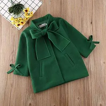 2-8Y Kids Toddler Girl Wool Coat with Big Bowknot Long Sleeve Trench Coat Fall Winter Outwear Jacket for Children (Green, 2-3 Years)