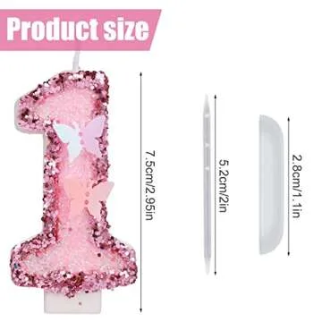 2.95 Inch Birthday Number Candles, Glitter Pink Number Candles Cake Topper Butterfly Birthday Candles with Sequins for Anniversary Celebrations Supplies (Number 1)