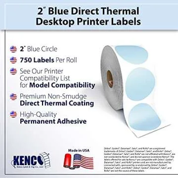 2” Circle Direct Thermal Perforated Stickers Labels for Barcodes, Address, Small Business Labeling, Inventory and Color Coding – Compatible with Zebra, Rollo, Munbyn, and More (Blue, 1 ROLL)