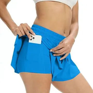 2 in 1 Flowy Womens Gym Shorts Yoga Athletic Workout Running Girls Dance Cheer Spandex Cute Comfy Lounge Sweat Ruffle Skirt Preppy Summer (M, Blue)