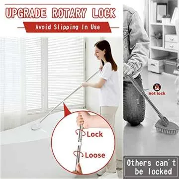 Show more This innovative shower cleaning brush set is an essential addition to your cleaning routine, designed to make bathroom upkeep a breeze. Featuring an upgraded rotary lock mechanism, this brush ensures that the extension pole securely locks into place, eliminating the frustration of slipping poles that other products often suffer from. The set includes an extension pole, four replaceable cleaning heads, and a microfiber cloth, making it an all-in-one solution for a pristine bathroom.