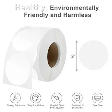 2 inch Circle Direct Thermal Perforated Stickers Labels, 800PCS Self-Adhesive Round Direct Thermal Labels, Suitable for DIY Logo Design, Business,Name Tag, Inventory and Color Coding-800 Labels/1 Roll