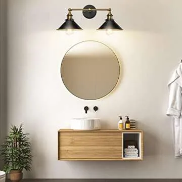 2-Light Bathroom Vanity Light Fixtures, Licperron Farmhouse Black Bathroom Light Over Mirror, Industrial Wall Sconces Vanity Lighting for Bathroom Kitchen Cabinet, Gold
