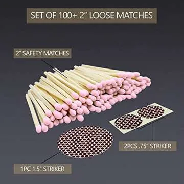 2" Light Pink Tip Safety Matches | Set of 100+ Bulk Artisan Matchsticks with Striker Stickers by Thankful Greetings | Decorative & Unique Candle Lighting, Home Decor, Wedding Giveaways, & Events