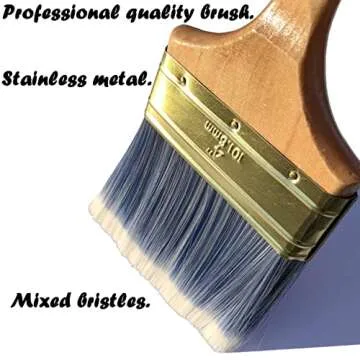 Show more Elevate your painting experience with our 2 Pack - 4 inch Professional Paint Brushes. Designed for versatility and durability, these brushes feature a thoughtfully constructed mixed bristle design that accommodates a wide variety of paints including acrylic, chalk, oil-based, and latex. The wooden handles provide not only an ergonomic grip for extended use but also a classic aesthetic that complements any toolkit. Whether you're tackling a large wall or intricate detailing, these brushes deliver professional results. Perfect for DIY enthusiasts and seasoned pros alike, they offer excellent value without compromising on quality.